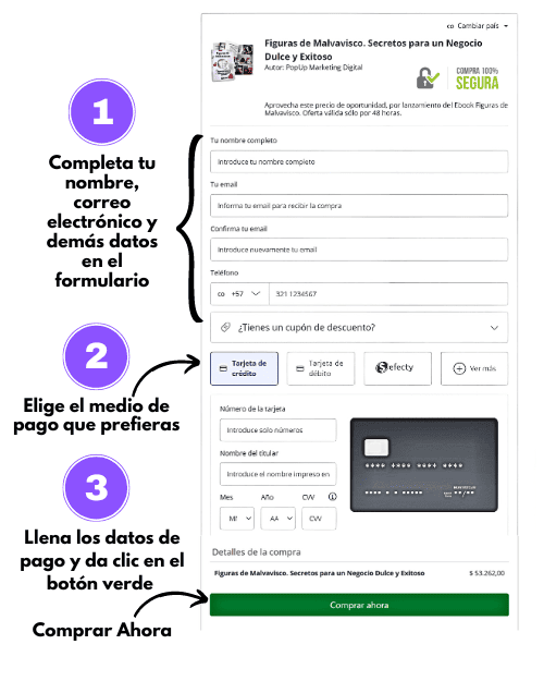 Entiendo tu preocupación. Debes saber que el Ebook original Figuras de Malvavisco – Secretos para un Negocio Dulce y Exitoso SOLO se vende a través de esta página oficial (dulcescreaciones.lat)